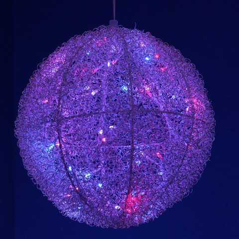 Мотив "Шар" изготовлен из никелированной проволоки на металлическом каркасе и подсвечен диодами, светодинамический, 50 светодиодов (2-х кристалльных), d=25см, IP44. Напряжение 24V