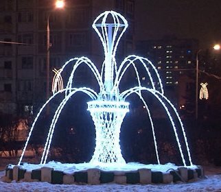 Мотив "Фонтан" изготовлен из светодиодного дюралайта на металлическом каркасе, светодинамический (контроллер (IP44) в комплекте). Напряжение 220V. Размер 3,0х3,0х2,5м. Цвет: БЕЛЫЙ ХОЛОДНЫЙ