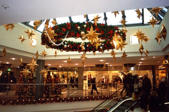 - елочные игрушки разных размеров и цветов(шары, цветы, бусы, банты);